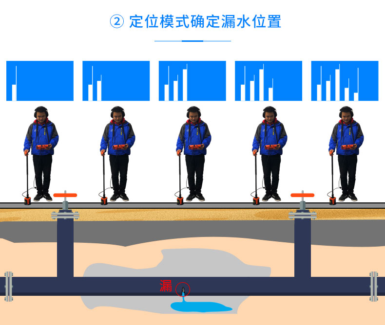 | 定位模式(可疑漏水區(qū)域內(nèi)精確定位漏水點(diǎn)) | ||||