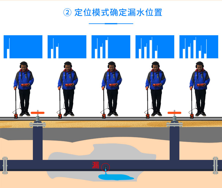 | 定位模式(可疑漏水區(qū)域內(nèi)精確定位漏水點(diǎn)) | |