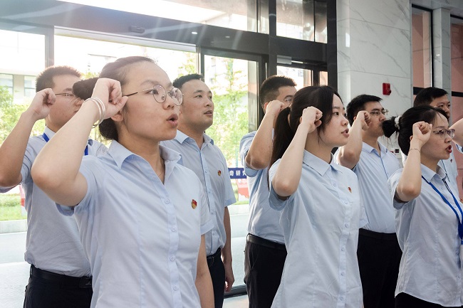 ? ? ? 普奇黨建廳前舉行宣誓儀式