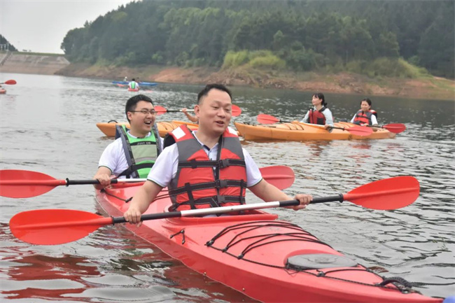 ? ? ? ?到達(dá)目的地后,大家迅速集合拍全家福,展現(xiàn)普奇人意氣風(fēng)發(fā)的精神面貌,隨后在教練的安排下分組進(jìn)行了山地越野車、皮劃艇、飛盤等活動(dòng),歡聲笑語回蕩在營地中,切實(shí)活躍了氣氛,增強(qiáng)了團(tuán)隊(duì)合作精神。普奇人充分發(fā)揮團(tuán)隊(duì)協(xié)作精神,活動(dòng)場面既激情如火又溫馨和諧,每個(gè)活動(dòng)中普奇人都默契配合,相互幫助、鼓勵(lì),盡情揮灑青春的激情。