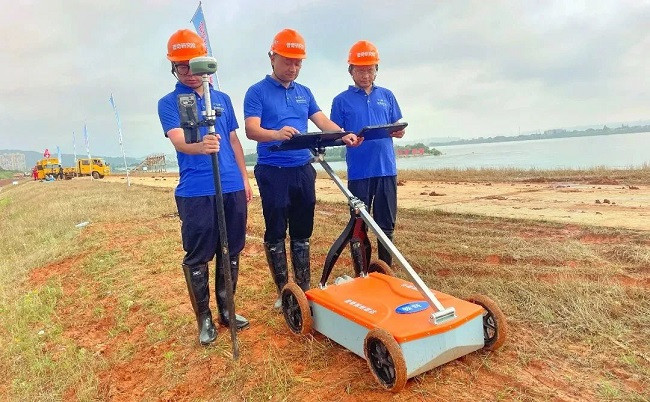 普奇采用探地雷達(dá)對(duì)大堤進(jìn)行全面隱患排查,具備堤壩安全快速檢測(cè)能力,創(chuàng)新搭載地質(zhì)異常電磁響應(yīng)系統(tǒng),融合三維成像系統(tǒng)和云臺(tái)巡檢系統(tǒng),1分鐘可完成百米堤防風(fēng)險(xiǎn)探測(cè),能夠代替人工巡堤、快速探明管涌、散浸、崩岸等險(xiǎn)情,節(jié)省大量的人力,方便搶險(xiǎn)人員在第一時(shí)間快速定位堤防風(fēng)險(xiǎn)位置,快速開展管涌修復(fù)、夯實(shí)等工作。