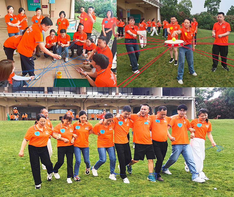 ? ? ? ?慶典當(dāng)日,洋沙湖的清風(fēng)綠意成為普奇人最好的“團建搭檔”。繩子運球、兩人三足、鼓動人心……一場場趣味拓展游戲在細(xì)雨中火熱展開。雨水未減熱情,反添斗志,團隊成員默契協(xié)作、笑語不斷,詮釋了“幸福普奇”的溫暖底色。游戲間,新老員工攜手跨越障礙,恰如普奇十九年風(fēng)雨同舟的縮影。