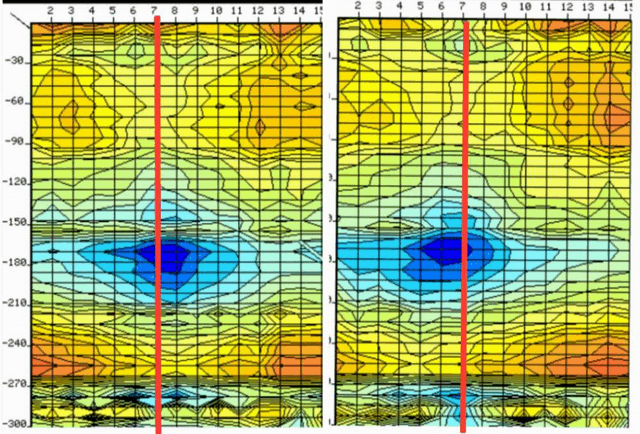 《圖三、蓬萊、在無(wú)不均勻體條件下原測(cè)圖與原位復(fù)測(cè)圖之比較》