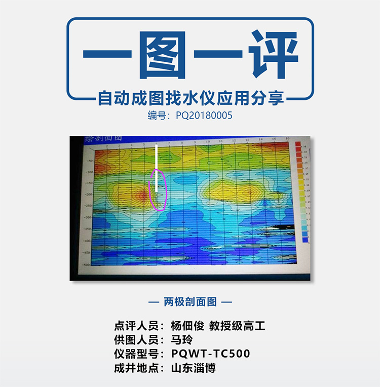 該圖在110米以上,6號點(diǎn)左右顏色無明顯差別,但在110米以下,尤其在150~260米,左側(cè)為高值,右測為低值,數(shù)值為0.1左右,這個數(shù)值在灰?guī)r中是較好的,6點(diǎn)右側(cè)的低值也不存在淺層有低值下傳的影響,應(yīng)該是裂隙率好的表現(xiàn),從110~250等值線有4個明顯的橫向的鋸齒,更是裂隙的反映,繼續(xù)加深仍然有水。